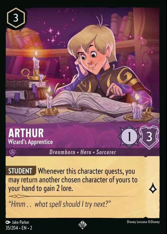 Lorcana Rise of The Floodborn Super Rare Arthur Wizard's Apprentice 35/204 - NM