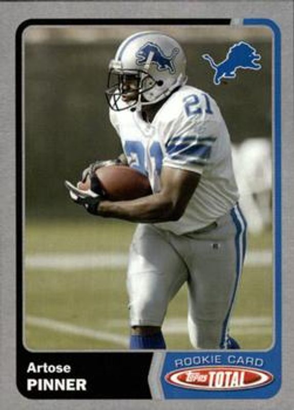 The Artose Pinner 2003 Topps Total #526 Silver Rookie card is 1 of 2 Artose Pinner's card variations in the 2003 Topps Total set being tracked by Sports Card Investor, including Base.