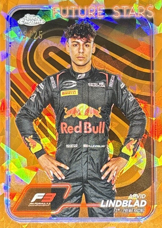 The Arvid Lindblad 2024 Topps Chrome Formula 1 Sapphire Edition #45 Orange /25 card in Raw condition has not changed in price in the last 30 days and was last sold for $250.00 .