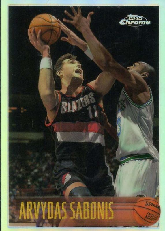 Arvydas Sabonis' Basketball cards are available in at least 143 sets. Arvydas Sabonis' biggest 7-day price movers are 1996 Topps Chrome #38 Refractor, 1996 Skybox E-X2000 #59 Credentials /499, and 2021 Flawless #DGS-ASP Draft Gem Signatures /25.