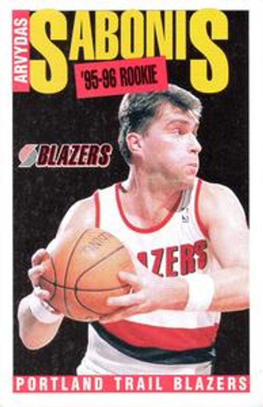 The Arvydas Sabonis 1996 Panini Stickers #285 Base card is 1 of 2 Arvydas Sabonis' card variations in the 1996 Panini Stickers set being tracked by Sports Card Investor, including Base.