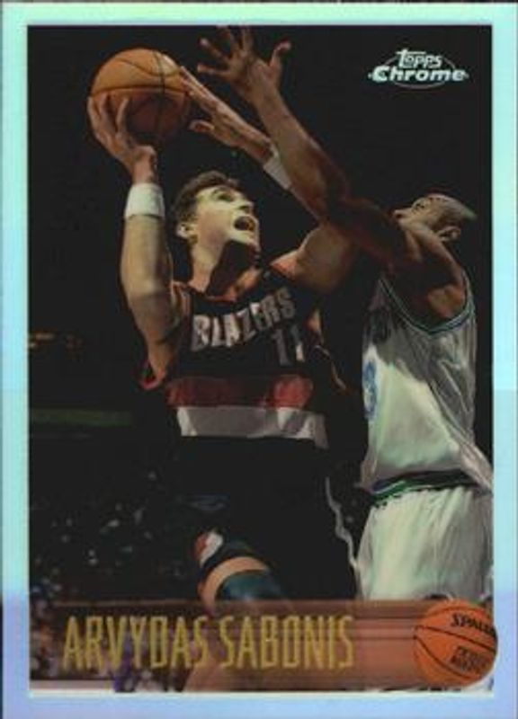 The Arvydas Sabonis 1996 Topps Chrome #38R Refractor card is 1 of 3 Arvydas Sabonis' card variations in the 1996 Topps Chrome set being tracked by Sports Card Investor, including Base, and Refractor.