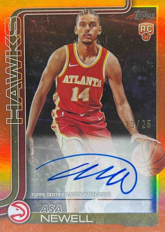 The Asa Newell 2025 Topps #TFRR-AN Flagship Real One Rookie Autographs - Orange Rainbow /25 card in Raw condition has not changed in price in the last 30 days and was last sold for $120.50 .