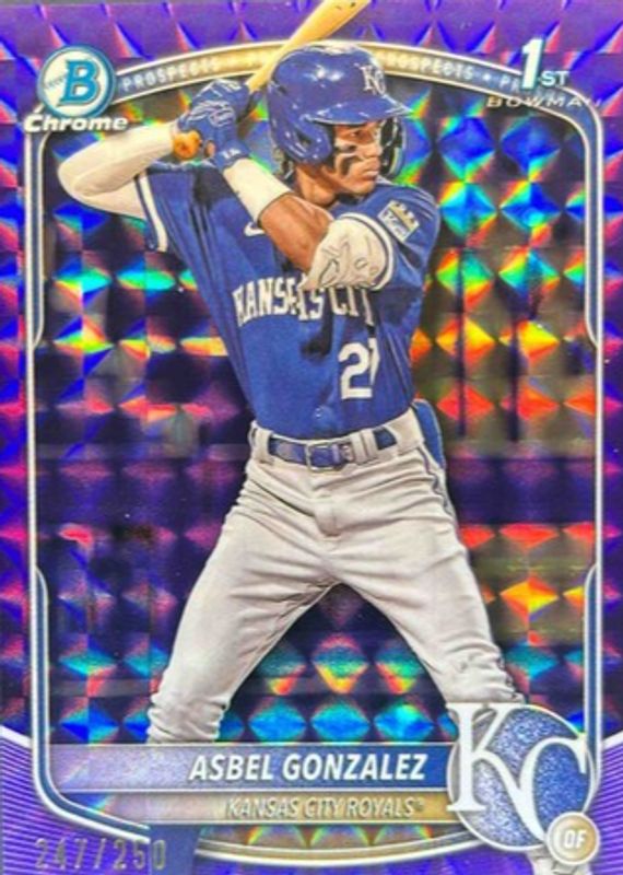 2025 Bowman Asbel Gonzalez 1st Chrome Prospect /250 Purple Geometric Royals
