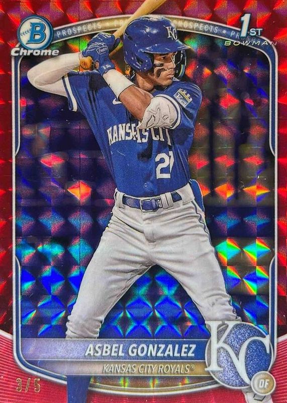 Asbel Gonzalez 2025 Bowman #BCP-4 Chrome Prospects - Red Geometric Refractor /5 (1st) PSA 9 Price Guide