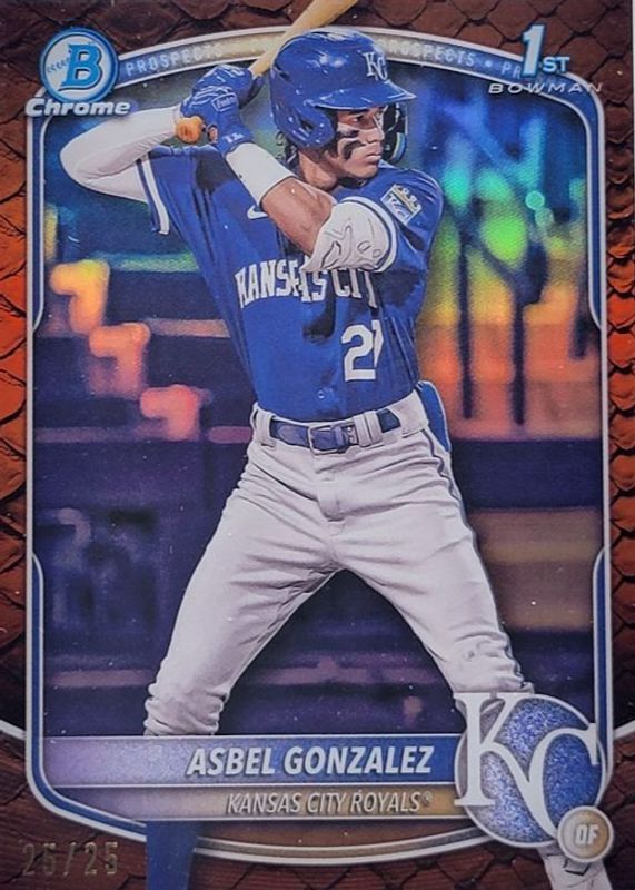 Asbel Gonzalez 2025 Bowman #BCP-4 Chrome Prospects - Reptilian Orange Refractor /25 (1st) RAW Price Guide