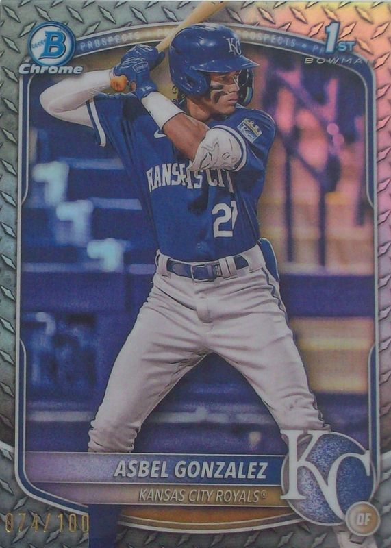 ASBEL GONZALEZ 2025 BOWMAN CHROME #BCP-4 1ST PROSPECT STEEL METAL REFRACTOR /100