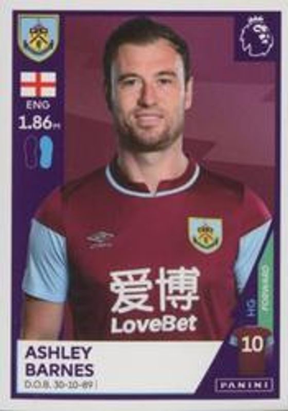 Ashley Barnes' Soccer cards are available in at least 13 sets. Ashley Barnes' biggest 7-day price movers are 2020 Panini Premier League Stickers #131 Base, 2020 Panini Premier League Stickers #316 Base, and 2022 Panini Premier League Stickers #160 Base.
