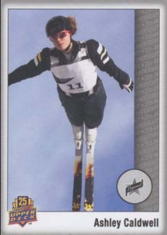 The Ashley Caldwell 2014 Upper Deck 25th Anniversary #68 Base card is 1 of 7 Ashley Caldwell's card variations in the 2014 Upper Deck 25th Anniversary set being tracked by Sports Card Investor, including Silver Celebration /250, Printing Plates Black /1, Printing Plates Cyan /1, Printing Plates Magenta /1, and Printing Plates Yellow /1.