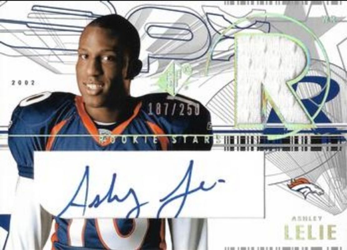 The Ashley Lelie 2002 SPx #177 Base Rookie /1500 card is 1 of 3 Ashley Lelie's card variations in the 2002 SPx set being tracked by Sports Card Investor, including Winning Materials, and Winning Materials - Gold /250.