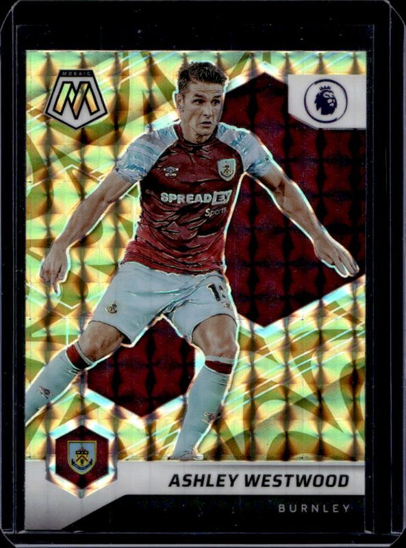 The Ashley Westwood 2021 Mosaic Premier League #32 Reactive Gold card is 1 of 26 Ashley Westwood's card variations in the 2021 Mosaic Premier League set being tracked by Sports Card Investor, including Base, Blue Pulsar, Choice Peacock, Choice Red & Green, and Genesis.