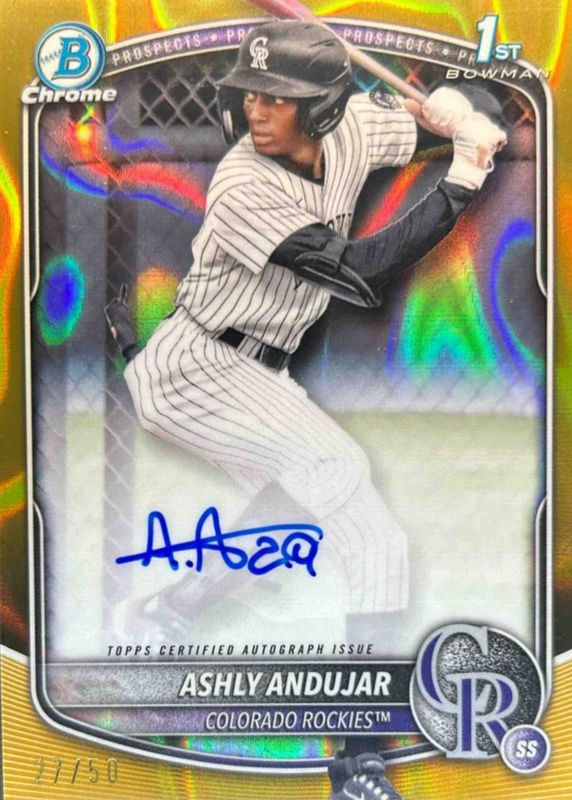 ASHLY ANDUJAR 2025 BOWMAN CHROME 1ST GOLD LAVA ROCKIES AUTO /50 Q2596