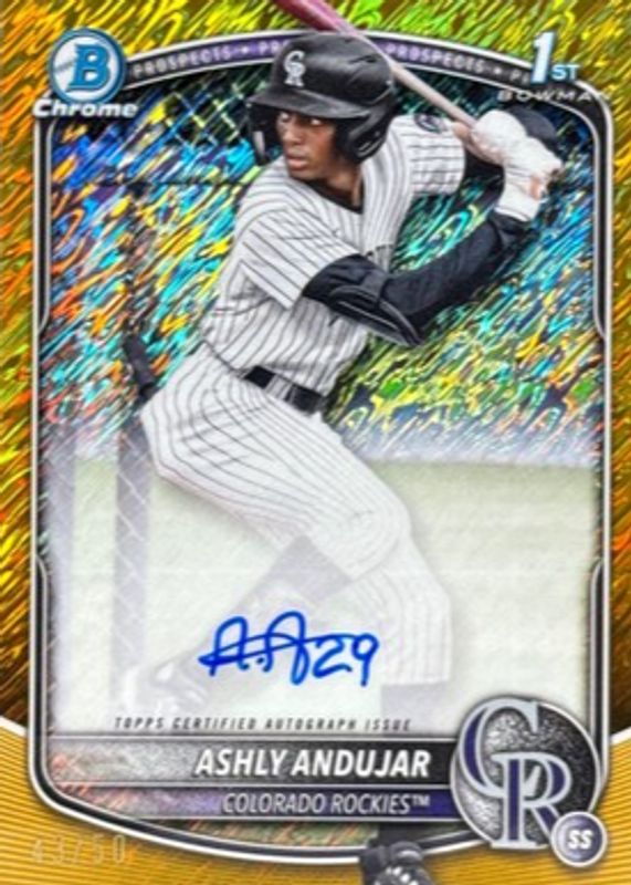 2025 Bowman Chrome Ashly Andujar Gold Shimmer Auto #/50 1st Rockies Refractor RC