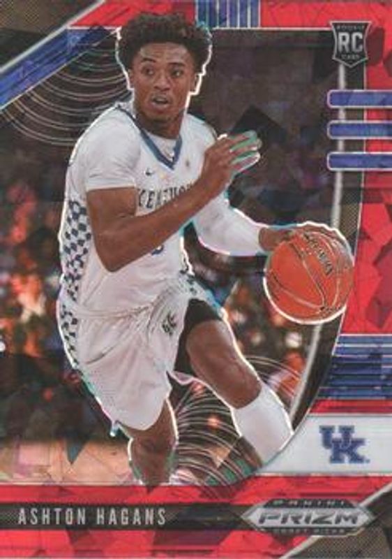 The Ashton Hagans 2020 Prizm Draft Picks #79 Red Ice Rookie card is 1 of 86 Ashton Hagans' card variations in the 2020 Prizm Draft Picks set being tracked by Sports Card Investor, including #79 Base, #39 Base, #79 Choice Blue Yellow Green, #39 Choice Blue Yellow Green, and #79 Fast Break.