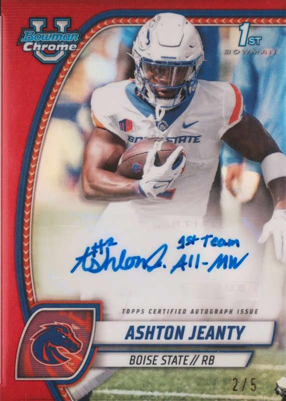 Ashton Jeanty 2024 Bowman Chrome University #PA-AJE Prospect Auto - Red Refractor /5 (1st) RAW Price Guide