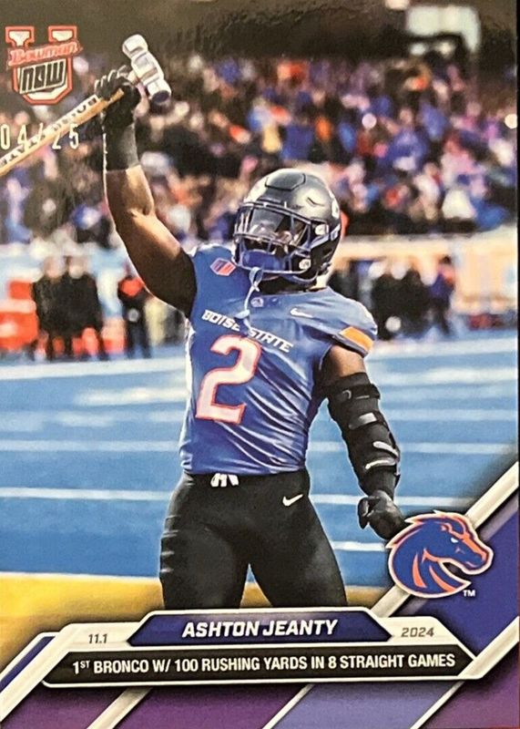 This card is 1 of 62 Ashton Jeanty's card variations in the 2024 Bowman U Now set being tracked by Sports Card Investor, including Base (Print Run: 1,991), Base (Print Run: 1,874), Base (Print Run: 1,990), Base (Print Run: 1,042), and Base (Print Run: 1,414).