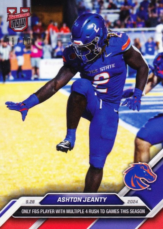 Ashton Jeanty 2024 Bowman U Now #20 Red /10 RAW Price Guide