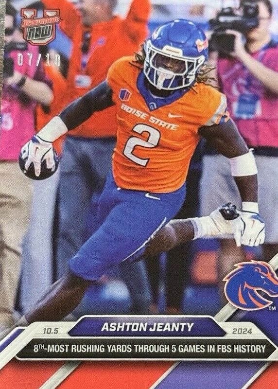 This card is 1 of 62 Ashton Jeanty's card variations in the 2024 Bowman U Now set being tracked by Sports Card Investor, including Base (Print Run: 1,991), Base (Print Run: 1,874), Base (Print Run: 1,990), Base (Print Run: 1,042), and Base (Print Run: 1,414).