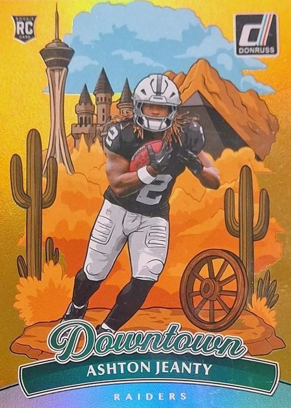 The Ashton Jeanty 2025 Donruss #11 Downtown - Gold /10 Rookie card in Raw condition has not changed in price in the last 30 days and was last sold for $6,000.00 .