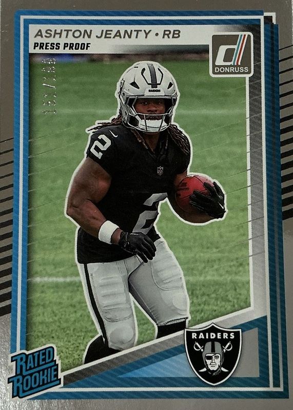 2025 Donruss Ashton Jeanty Rated Rookie Press Proof Silver RC #57/199 Raiders