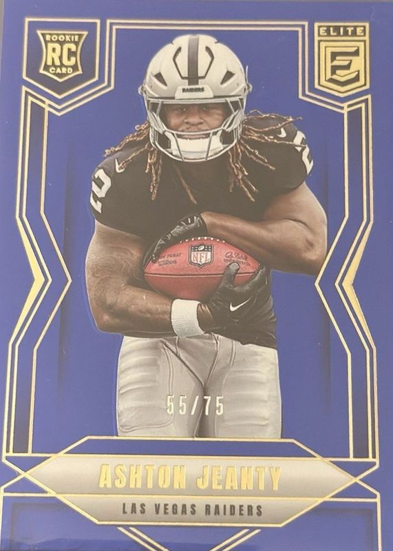 2025 Panini Donruss Elite 🔥Ashton Jeanty Blue #’d / 75 No. 113 SSP RC RAIDERS
