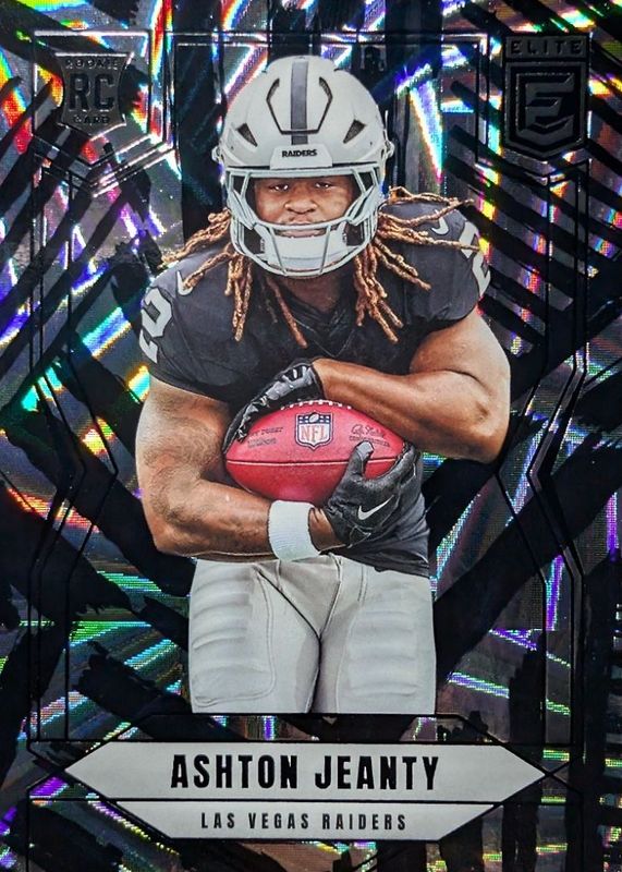 The Ashton Jeanty 2025 Elite #113 Razzle Dazzle /(SSP) Rookie card in Raw condition has not changed in price in the last 30 days and was last sold for $128.25 .