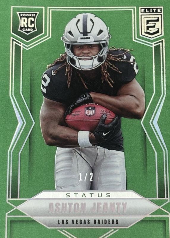 The Ashton Jeanty 2025 Elite #113 Status (/2) Rookie card in Raw condition has not changed in price in the last 30 days and was last sold for $850.00 .