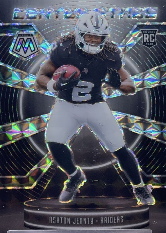 The Ashton Jeanty 2025 Mosaic #11 Center Stage - Mosaic Rookie card in Raw condition has moved up $1.51 (+54.9%) in the last 30 days and was last sold for $4.26 .