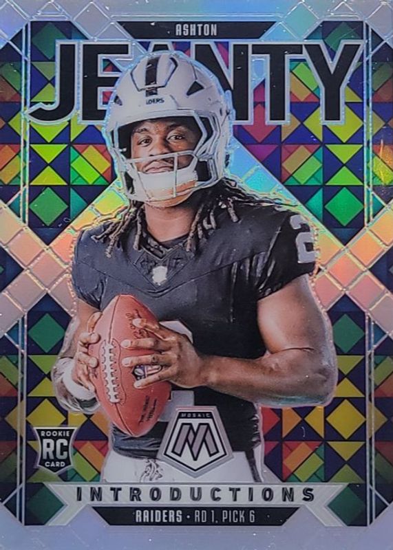 The Ashton Jeanty 2025 Mosaic #3 Introductions - Silver Rookie card in Raw condition has moved up $3.51 (+70.3%) in the last 30 days and was last sold for $8.50 .