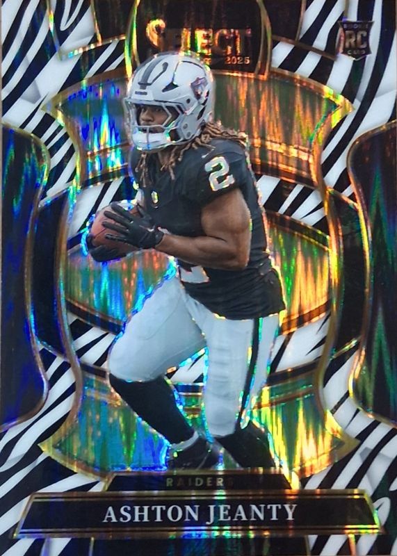 The Ashton Jeanty 2025 Select #4 Concourse Zebra Shock /(SSP) Rookie card in Raw condition has moved down -$51.00 (-21.0%) in the last 30 days and was last sold for $191.50 .