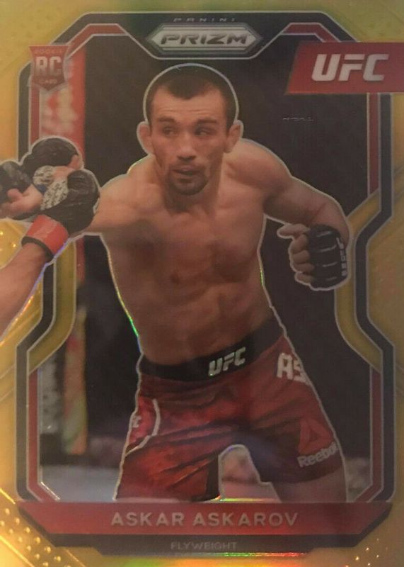 The Askar Askarov 2021 Prizm UFC #8 Gold /10 Rookie card in Raw condition has not changed in price in the last 30 days and was last sold for $406.33 .
