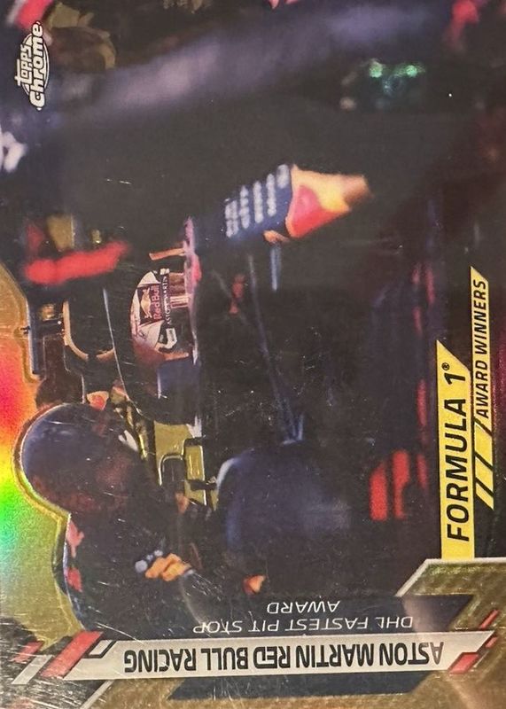 The Aston Martin Red Bull Racing 2020 Topps Chrome Formula 1 #194 F1 Award Winners - Gold Refractor /50 card in Raw condition has not changed in price in the last 30 days and was last sold for $43.00 .
