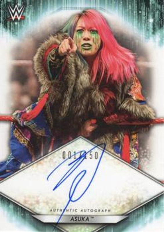 The Asuka 2021 Topps WWE #A-KN Autographs /150 card is 1 of 34 Asuka's card variations in the 2021 Topps WWE set being tracked by Sports Card Investor, including Base, Bronze, Foilboard, Aqua /299, and Orange /50.