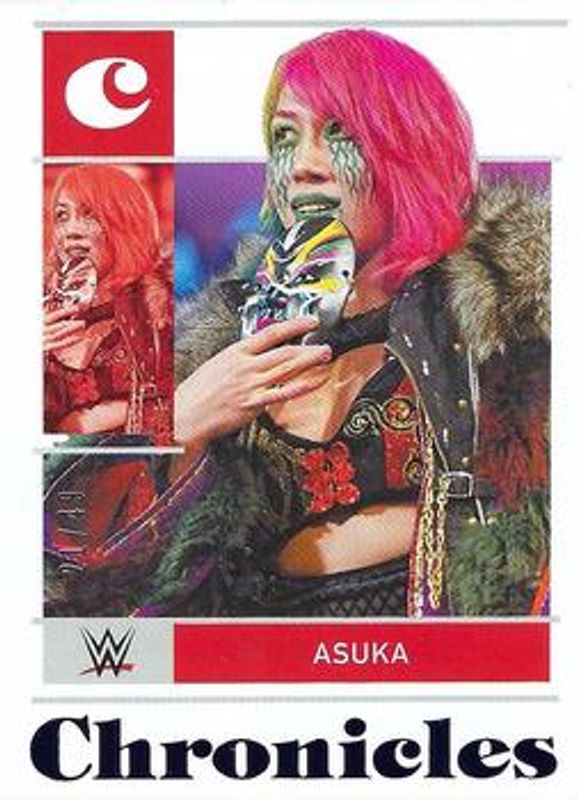 The Asuka 2022 Chronicles WWE #11 Purple /49 card is 1 of 46 Asuka's card variations in the 2022 Chronicles WWE set being tracked by Sports Card Investor, including #101 Base /99, #11 Base /99, #210 Base /99, #399 Base /99, and #469 Base /99.