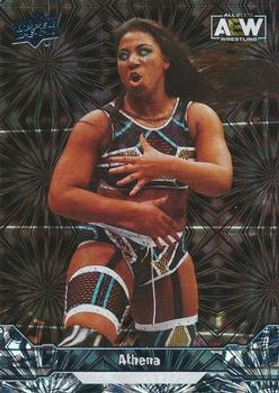 The Athena 2023 Upper Deck AEW #56 Pyro card is 1 of 43 Athena's card variations in the 2023 Upper Deck AEW set being tracked by Sports Card Investor, including Base, Clear Cut, Diamond Plate, Gold, and Rampage.
