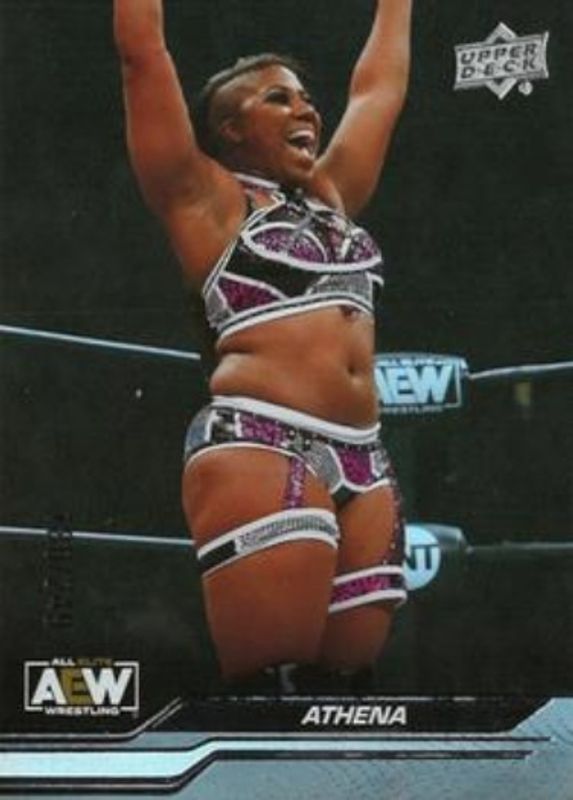 The Athena 2024 Upper Deck AEW #14 Steel Cage /249 card is 1 of 29 Athena's card variations in the 2024 Upper Deck AEW set being tracked by Sports Card Investor, including Base, Clear Cut, Diamond Plate, Gold, and Outburst.