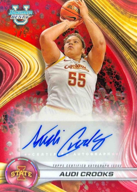 This card is 1 of 16 Audi Crooks' card variations in the 2024 Bowman Best University set being tracked by Sports Card Investor, including Best of 2024 Autographs, Best of 2024 Autographs - Geometric Refractor, Best of 2024 Autographs - Refractor, Best of 2024 Autographs - Green Mini-Diamond Refractor /99, and Best of 2024 Autographs - Yellow Lazer Refractor /75.
