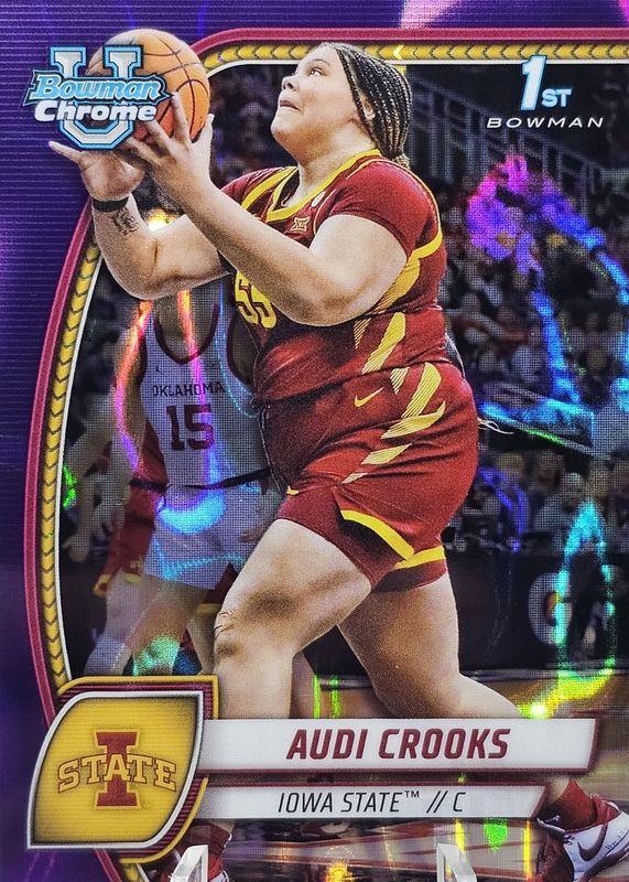 Audi Crooks 1st 2024-25 Bowman Chrome U Purple Lava Refractor #9 Iowa State
