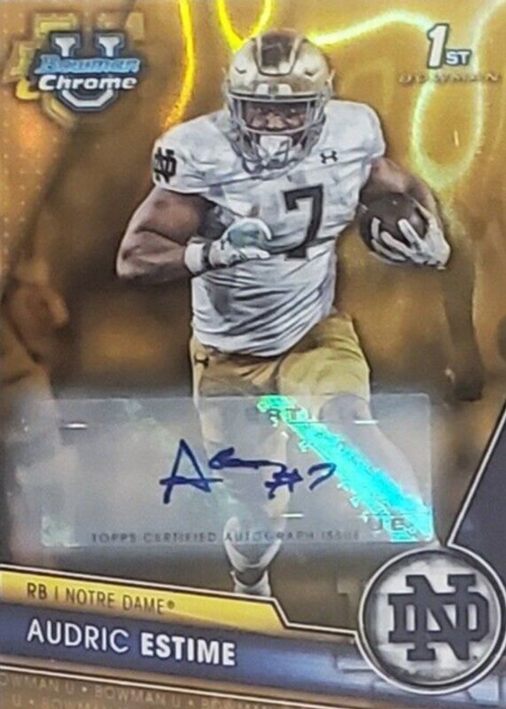 2023 Audric Estime Bowman Chrome University 1st Gold Lava Auto /50 Notre Dame
