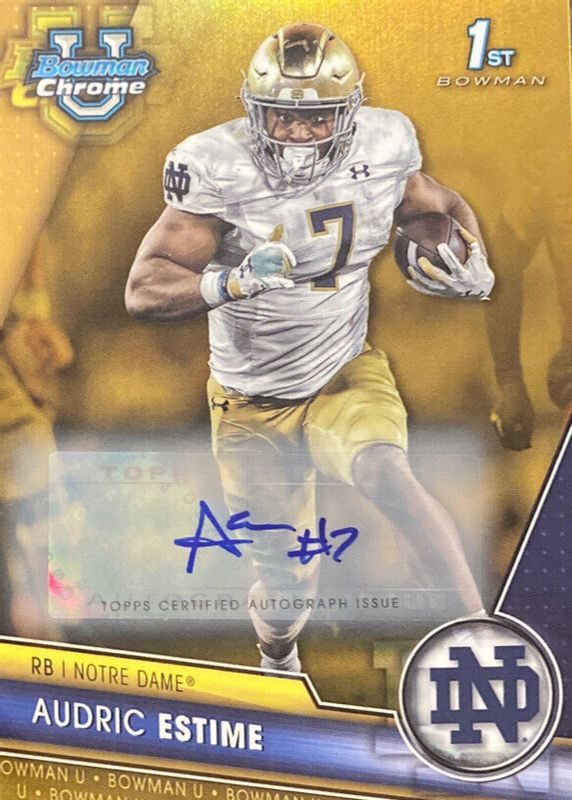 2023 Bowman Chrome U Audric Estime 1st Auto Gold Refractor /50 Notre Dame WC