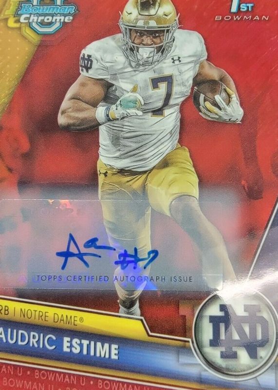 Audric Estime 2023 Bowman Chrome University #171 Prospect Auto - Red Shimmer Refractor /5 (1st) RAW Price Guide