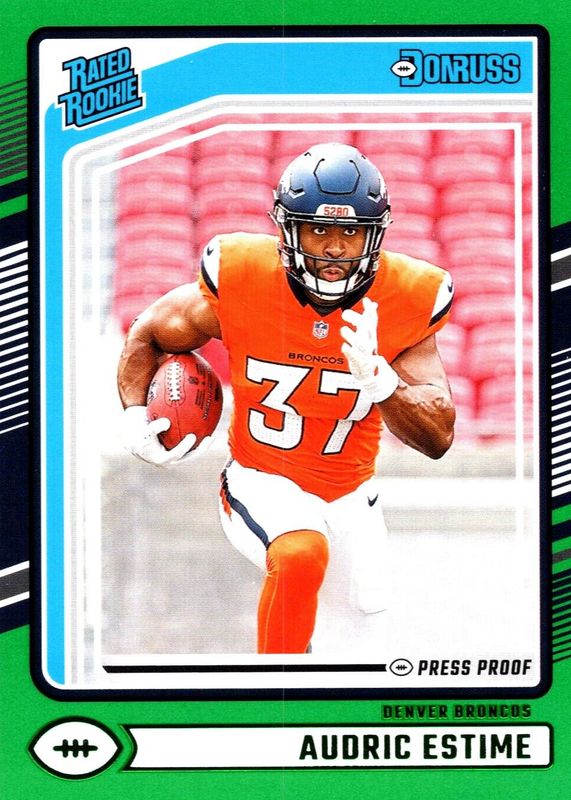 AUDRIC ESTIME 2024 Donruss Rated Rookie GREEN PRESS PROOF RC #335 Broncos