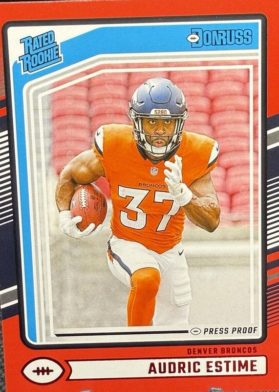 AUDRIC ESTIME 2024 Donruss Rated Rookie RED PRESS PROOF RC #335 Broncos