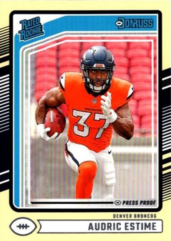 2024 Panini Donruss Audric Estime Rated Rookie Yellow Press Proof #335 Broncos
