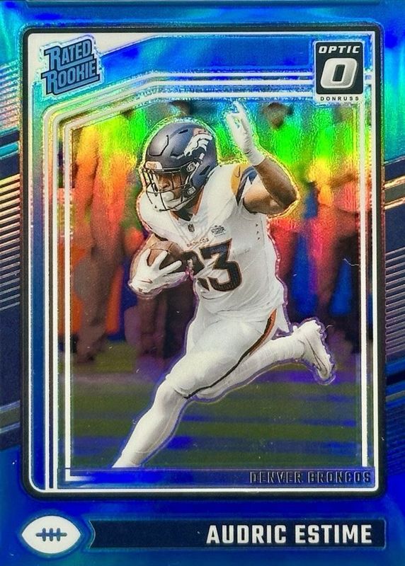 2024 Donruss Optic #206 Audric Estime Rated Rookie RC Aqua Prizm /299 Broncos