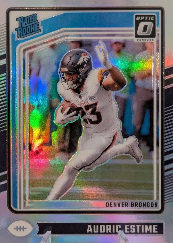AUDRIC ESTIME 2024 PANINI DONRUSS OPTIC #206 HOLO RATED ROOKIE BRONCOS