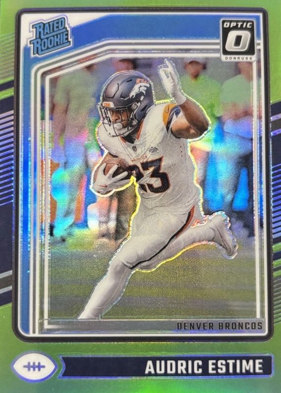 2024 Donruss Optic Audric Estime #206 Lime Green Rated Rookie /50 Denver Broncos