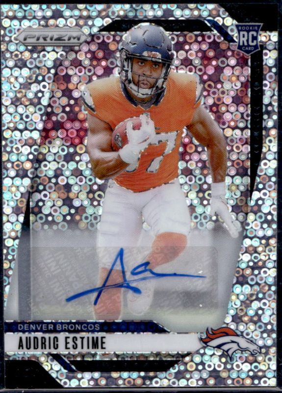 The Audric Estime 2024 Prizm #306 Base Autographs - No Huddle Rookie card is 1 of 121 Audric Estime's card variations in the 2024 Prizm set being tracked by Sports Card Investor, including Base, Choice Blue Yellow Green, Choice Silver, Disco, and Green.
