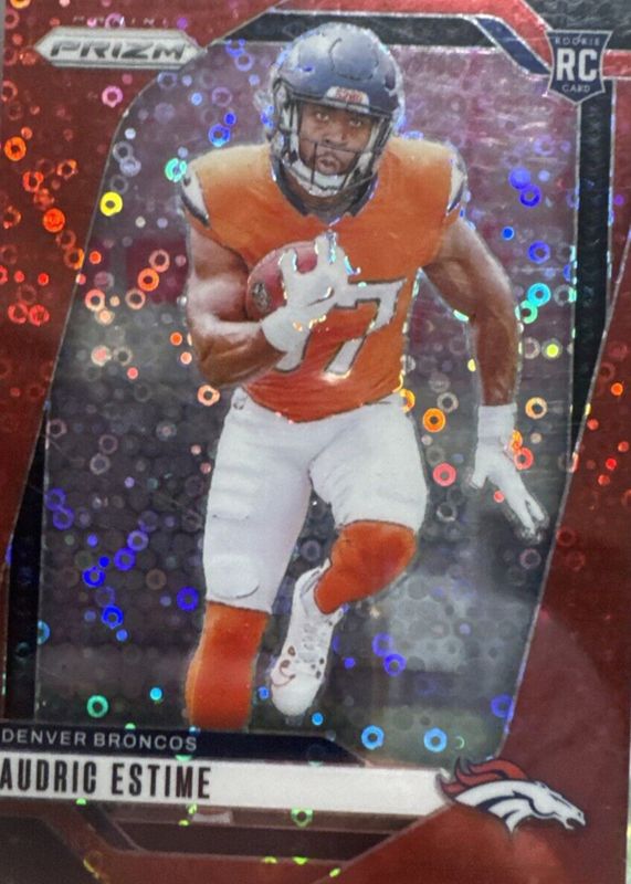 2024 Panini Prizm No Huddle Audric Estime #306 Red Disco Prizm /75 (RC) Broncos