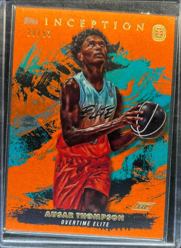 The Ausar Thompson 2021 Topps Inception OTE Overtime Elite #1 Orange /50 card is 1 of 113 Ausar Thompson's card variations in the 2021 Topps Inception OTE Overtime Elite set being tracked by Sports Card Investor, including #1 Base, #21 Base, #48 Base, #57 Base, and #48 Blue /199.